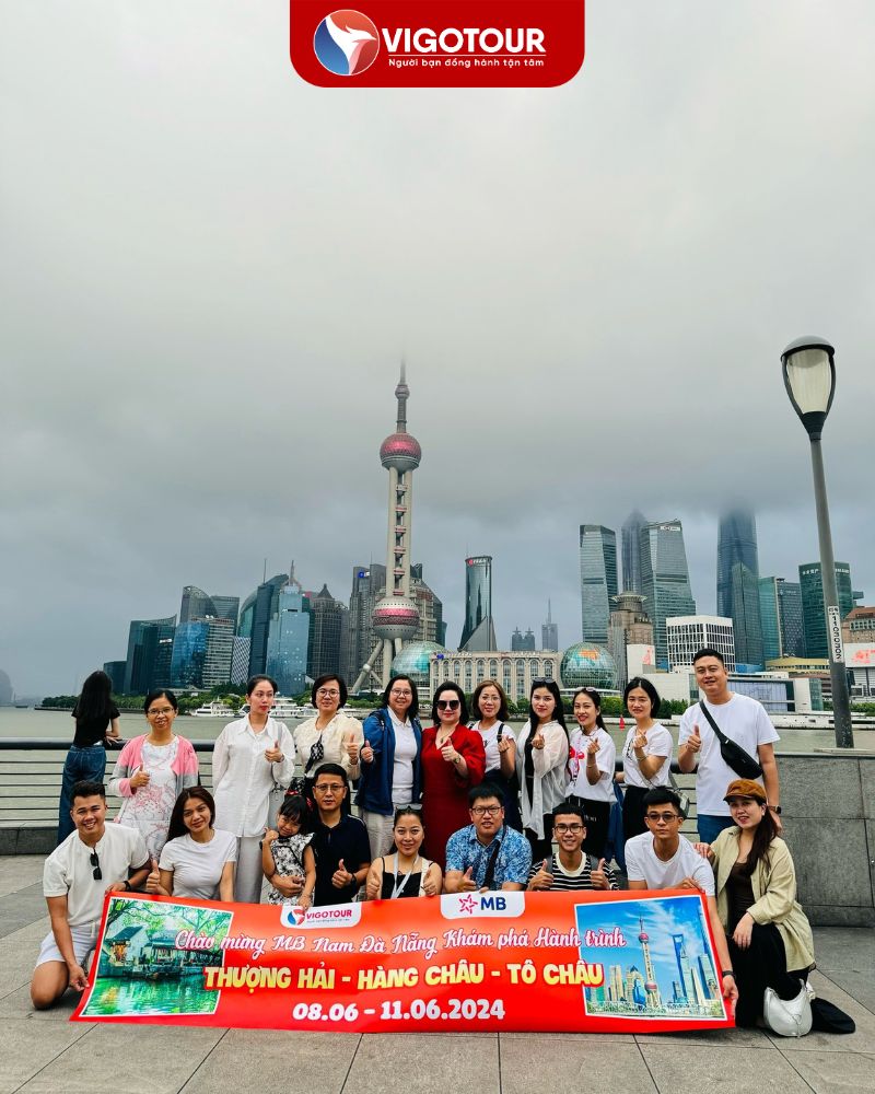 Hành trình khám phá “Thiên đường hạ giới” Thượng Hải – Hàng Châu – Tô Châu – Vô Tích của Đoàn khách Ngân Hàng MB Nam Đà Nẵng đồng hành Vigotour đã chính thức khép lại. Chuyến du lịch từ 08/06 đến 12/06 với dư âm niềm vui và sự hài lòng rạng rỡ trên khuôn mặt mỗi du khách. Trải qua 5 ngày 4 đêm, đoàn du khách đã được đắm chìm trong những khung cảnh tráng lệ, những công trình kiến trúc cổ kính và những nét văn hóa độc đáo của các thành phố nổi tiếng Trung Quốc.