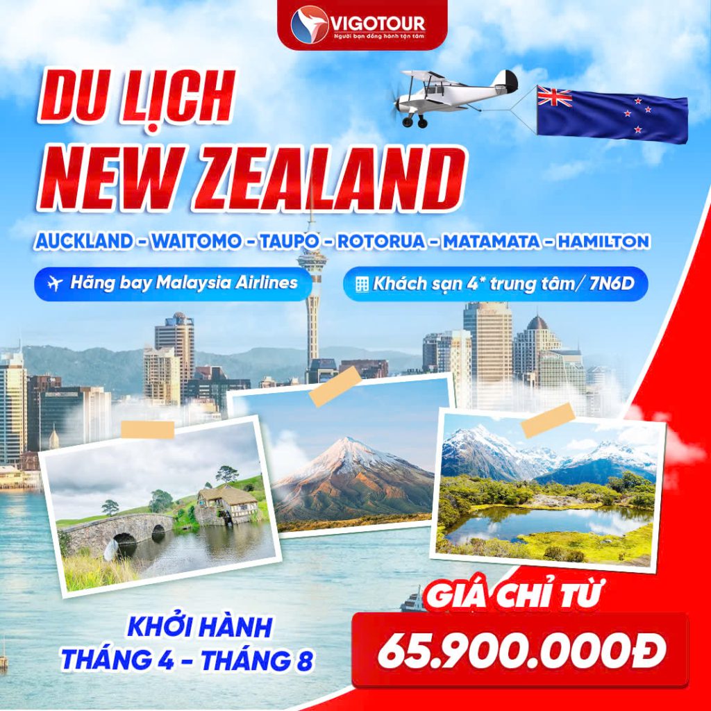 DU LỊCH NEW ZEALAND VÙNG ĐẤT CỦA DẢI MÂY TRẮNG (ĐẢO BẮC) AUCKLAND – WAITOMO – TAUPO – ROTORUA – MATAMATA – HAMILTON Thời gian: 7 ngày 6 đêm // Hãng hàng không:...
