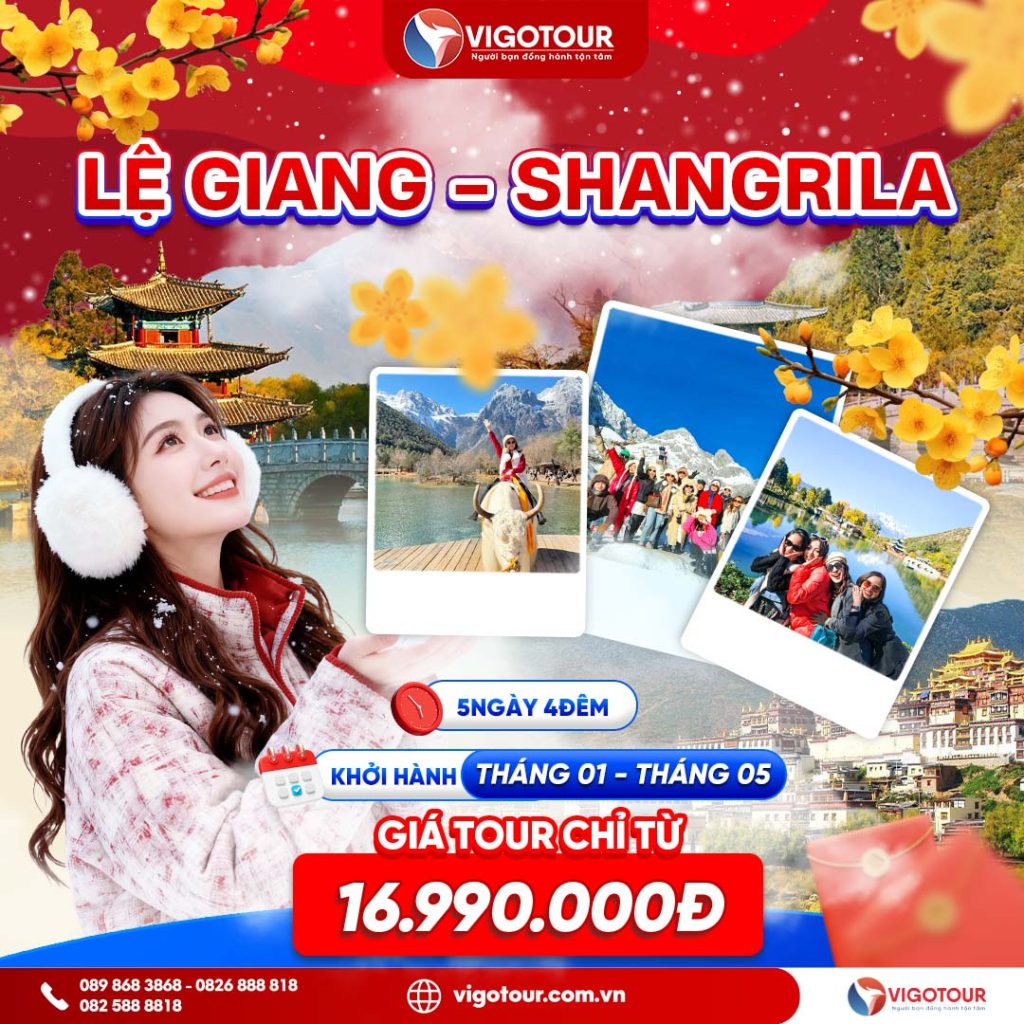 CHƯƠNG TRÌNH THAM QUAN LỆ GIANG – SHANGRILA Thời gian: 5 ngày 4 đêm Hàng không: Ruili Airlines bay thẳng HÀNH TRÌNH NO SHOP ĐIỂM NỔI BẬT CHƯƠNG TRÌNH TOUR: Núi...