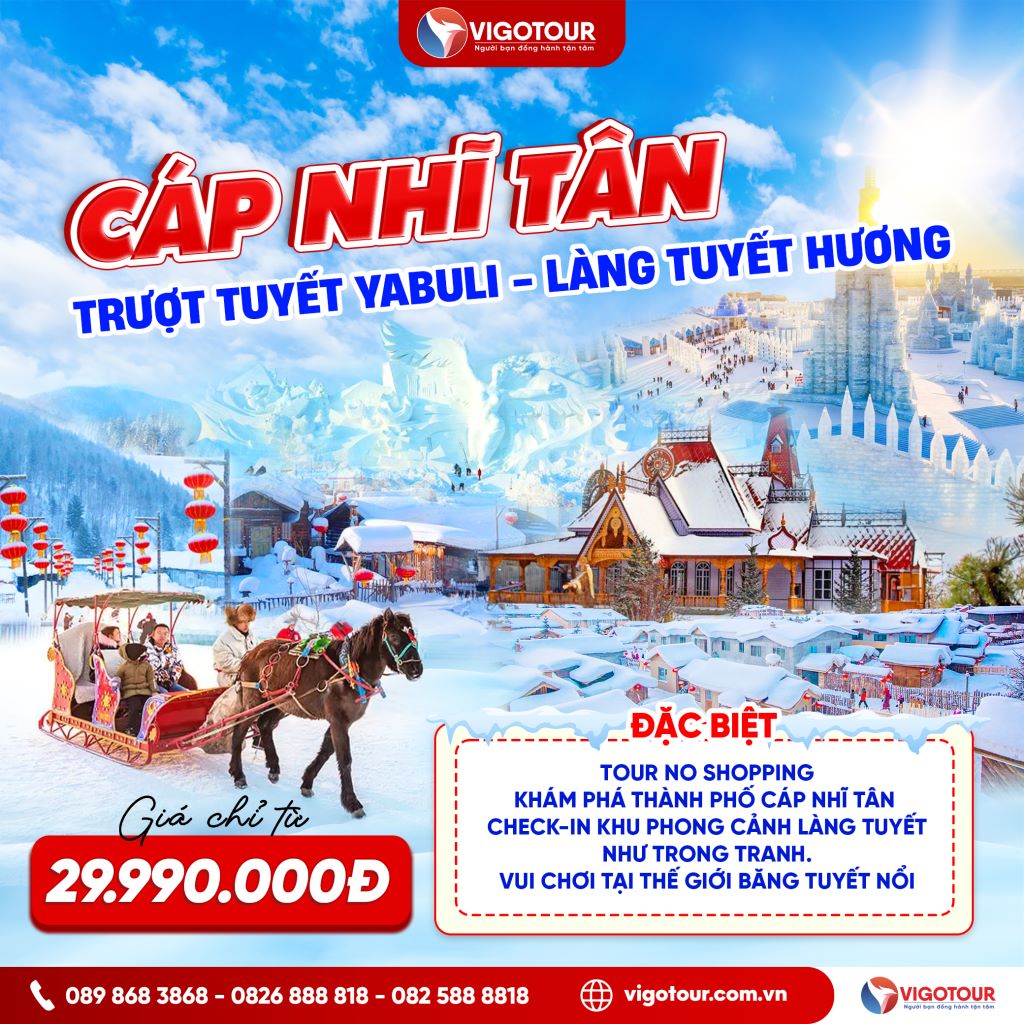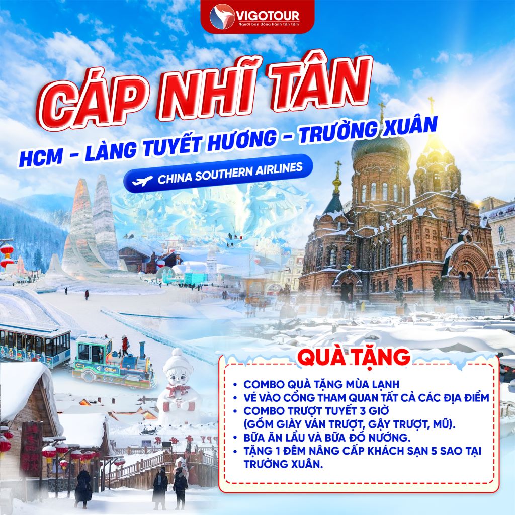 CÁP NHĨ TÂN – TRƯỢT TUYẾT YABULI LÀNG TUYẾT HƯƠNG – TRƯỜNG XUÂN Thời gian: 06 Ngày 05 Đêm – Hãng bay: China Southern Airlines TOUR NO SHOPPING Chương trình nổi...