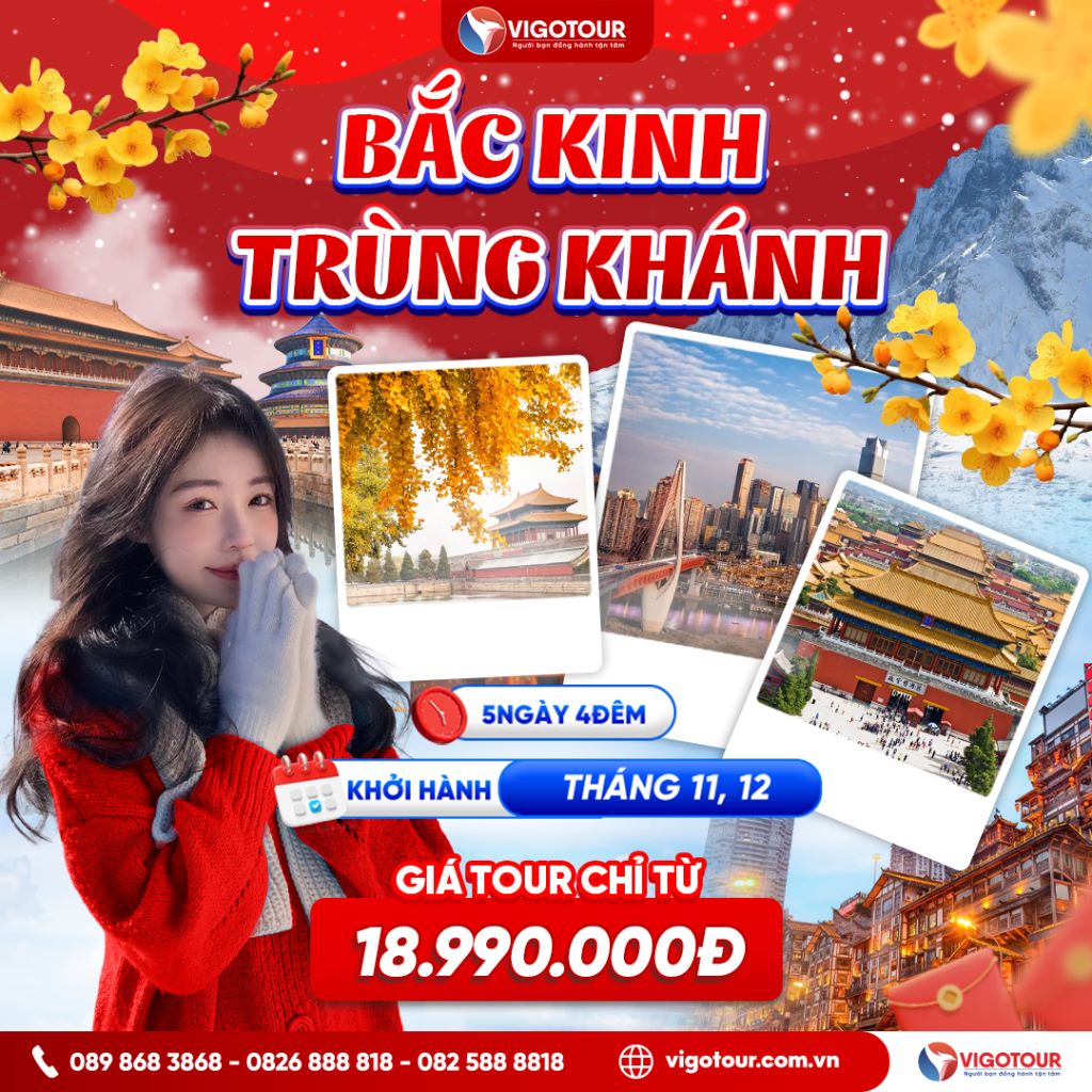 BẮC KINH – TRÙNG KHÁNH TỬ CẤM THÀNH – HỒNG NHAI ĐỘNG Thời gian: 05 NGÀY 04 ĐÊM ➢ Visa Trung Quốc cực kỳ đơn giản chỉ Hộ chiếu scan và hình. ➢...