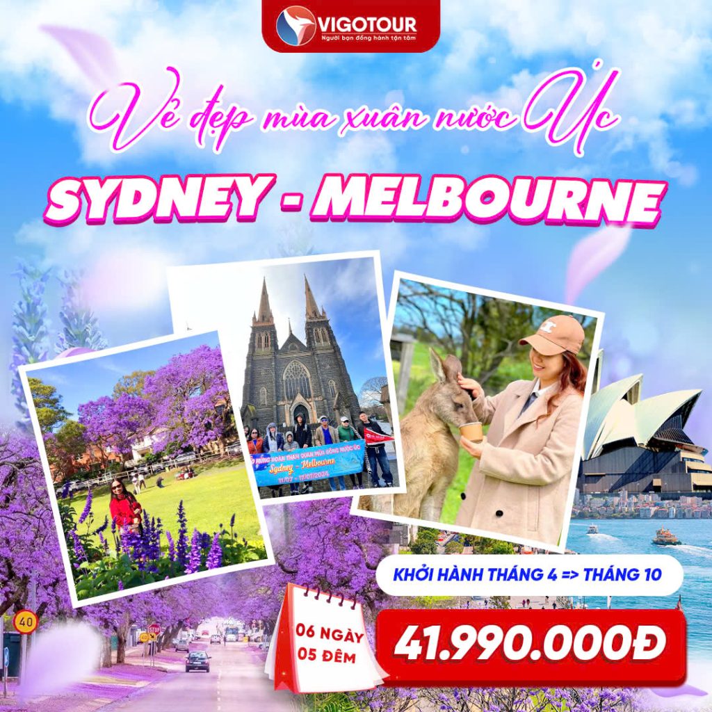 CHƯƠNG TRÌNH THAM QUAN DU LỊCH ÚC NĂM 2025 SYDNEY – MELBOURNE THỜI GIAN : 06 NGÀY 05 ĐÊM (4 ĐÊM KHÁCH SẠN) HÃNG HÀNG KHÔNG : JETSTAR AIRWAYS ĐIỂM THAM QUAN NỔI BẬT : Tham...
