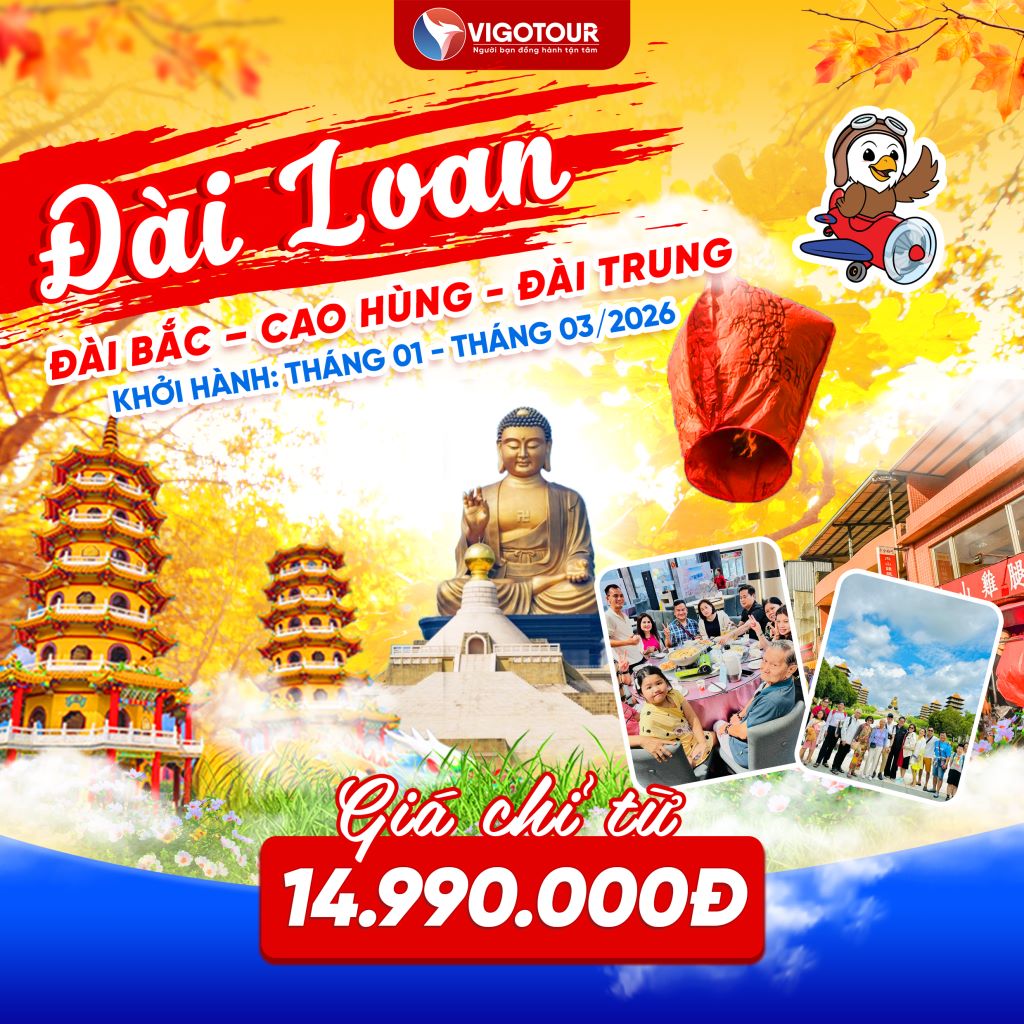CHƯƠNG TRÌNH TOUR ĐÀI LOAN 2026 ĐÀI BẮC – ĐÀI TRUNG – CAO HÙNG Chương trình: 5 ngày 4 đêm – Bay China Airlines Khởi hành: Từ tháng 01 – tháng 03/2026 TÓM TẮT...