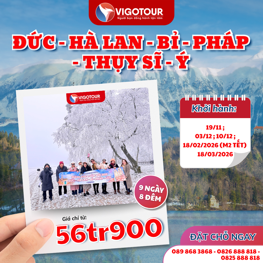 TÂY ÂU MÙA THU PHÁP – LUXEMBOURG – BỈ – HÀ LAN – ĐỨC Thời gian: 08 ngày 08 đêm – Hàng không: Air China Khởi hành: 07/11 – Giá tour: 53.900.000/Khách CÓ...