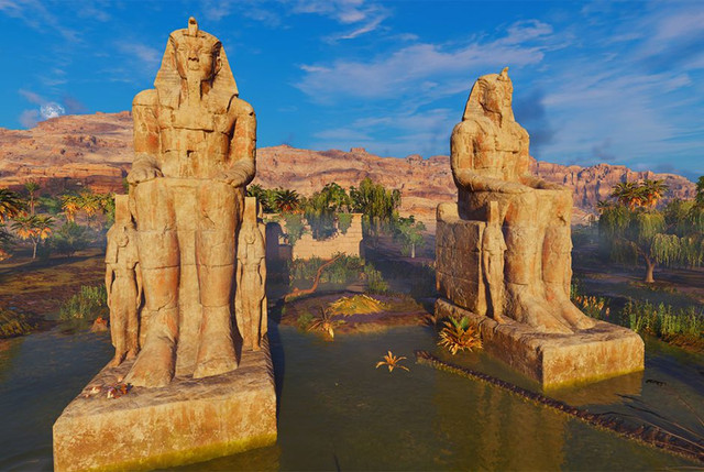 • Những bức tượng đá khổng lồ của Memnon: là hai bức tượng đá lớn của Pharaoh Amenhotep III, người cai trị tại Ai Cập trong thời kỳ XVIII. Trong 3.400 năm qua (kể từ năm 1350 TCN), hai bức tượng vẫn luôn nằm trong Khu di tích Theban Necropolis, nằm ở phía tây sông Nile từ thành phố Luxor hiện đại.