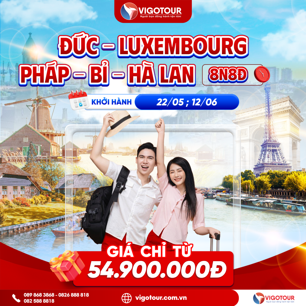 DU XUÂN BÍNH NGỌ – 2026 KHÁM PHÁ CHÂU ÂU QUA HÀNH TRÌNH PHÁP – BỈ – HÀ LAN – LUXEMBOURG – THỤY SĨ – ĐỨC Thời gian: 09 ngày 09 đêm (Lưu trú tại Châu Âu...