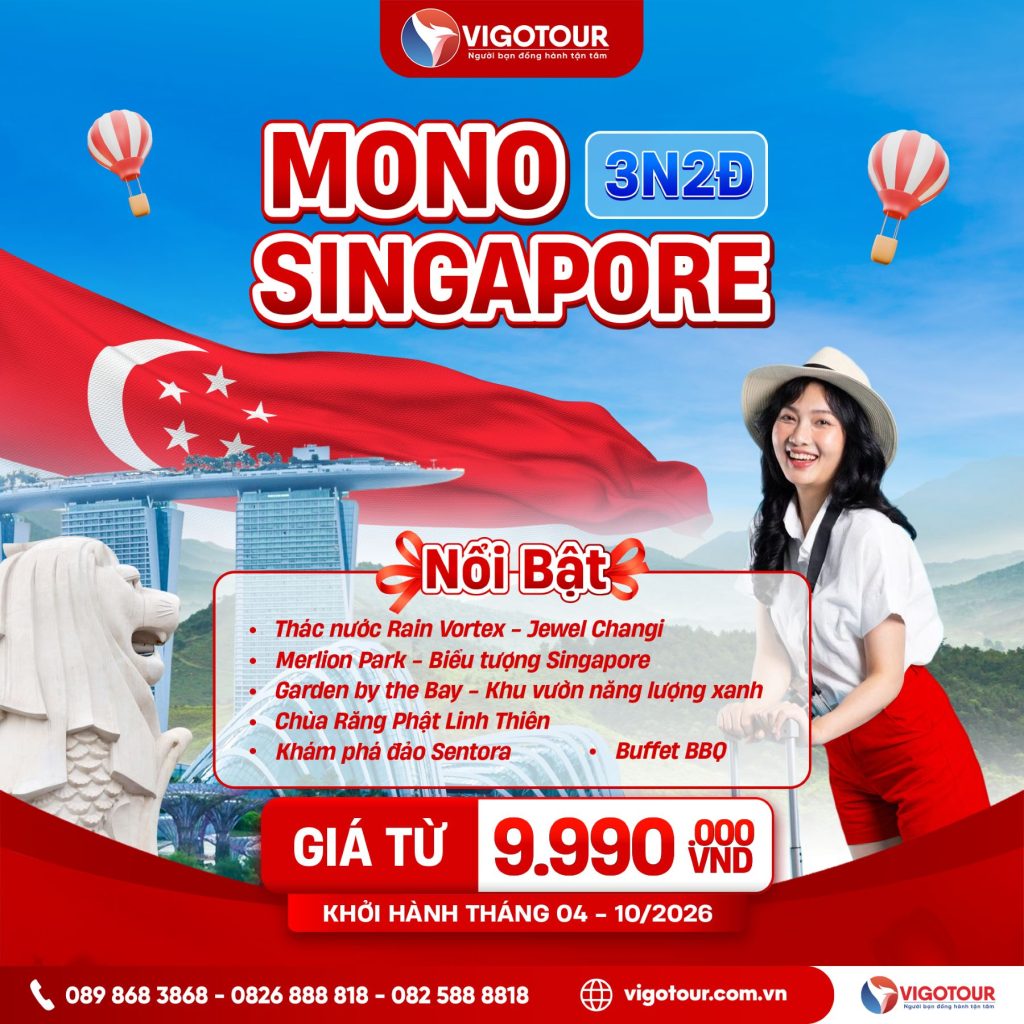 MỘT HÀNH TRÌNH HAI QUỐC GIA NĂM 2026 SINGAPORE – MALAYSIA 4N3Đ (1 ĐÊM SINGAPORE) Hãng bay: Scoot Air + Air Asia Lịch khởi hành: tháng 04 + 05 + 10 Đặc điểm nổi bật...