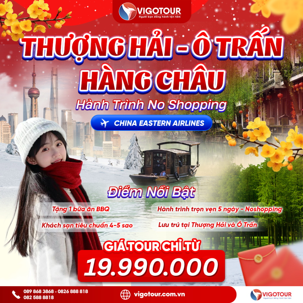 HÀNH TRÌNH TRẢI NGHIỆM TRUNG QUỐC ĐẶC BIỆT 2026 NAM KINH – Ô TRẤN – THƯỢNG HẢI – HÀNG CHÂU – NINH BA Ngày khởi hành: 17/02/2026 (M1 Tết Âm Lịch) Thời gian:...