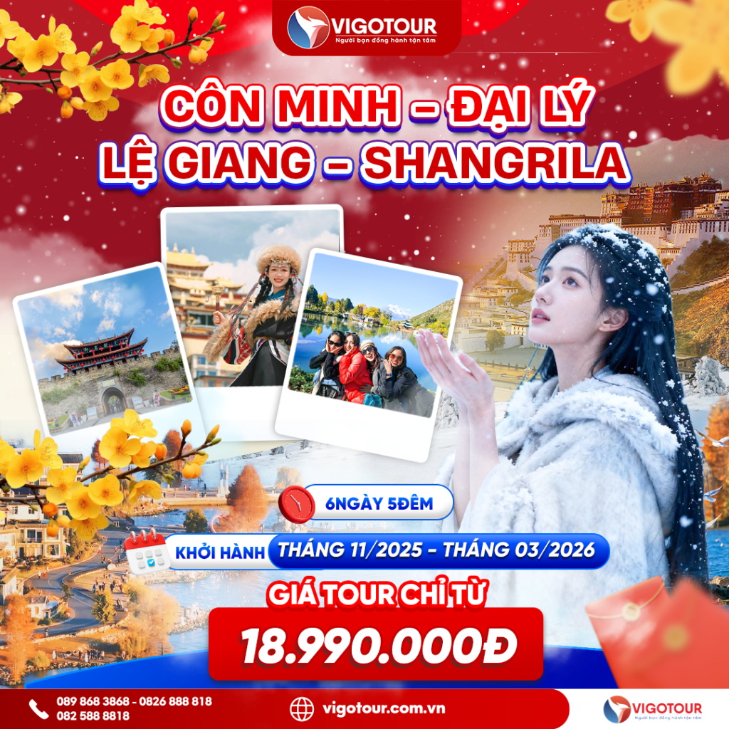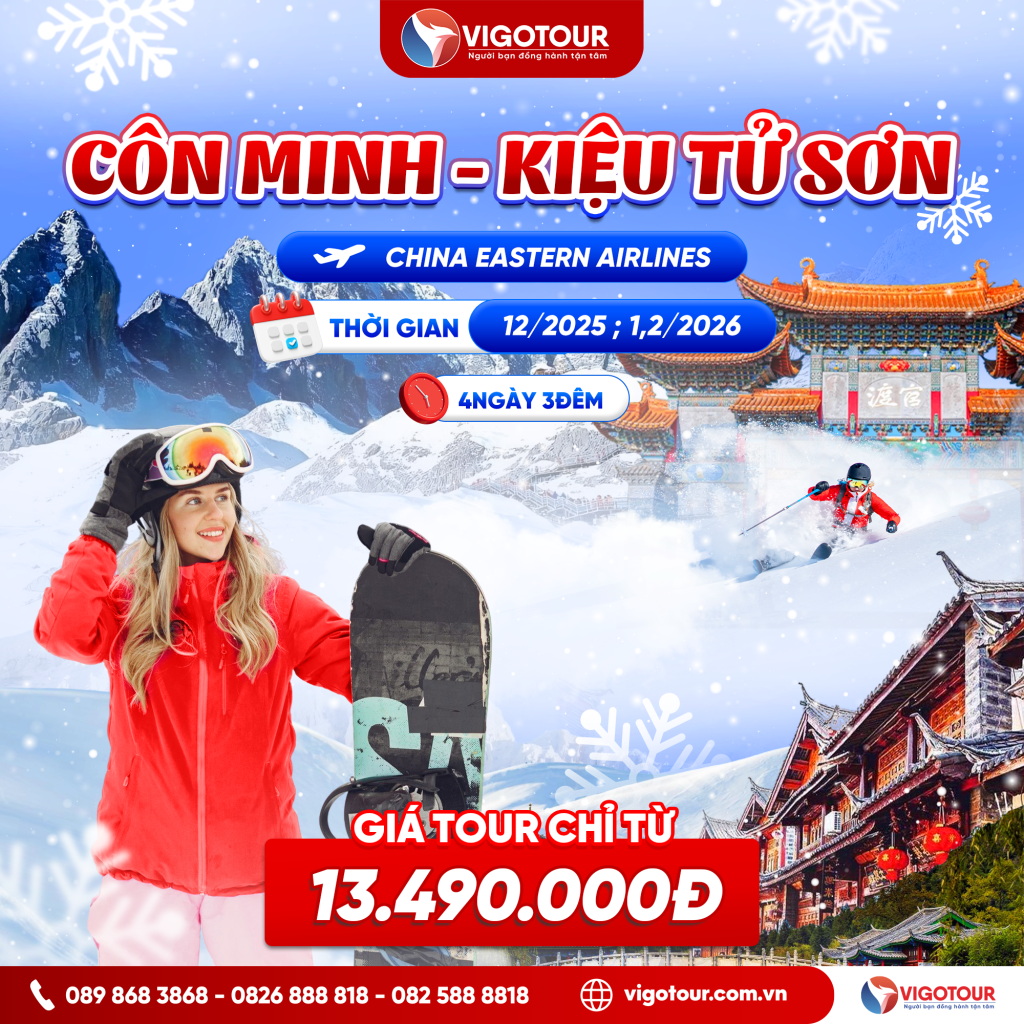 “Chạm Vào Mùa Tuyết Trắng Trung Hoa” Côn Minh – Kiệu Tử Sơn Ngày khởi hành: Hãng hàng không: China Eastern Airlines 20/12 ; 29/12 (Có Shopping) Tháng 01/2026: 13; 20;...