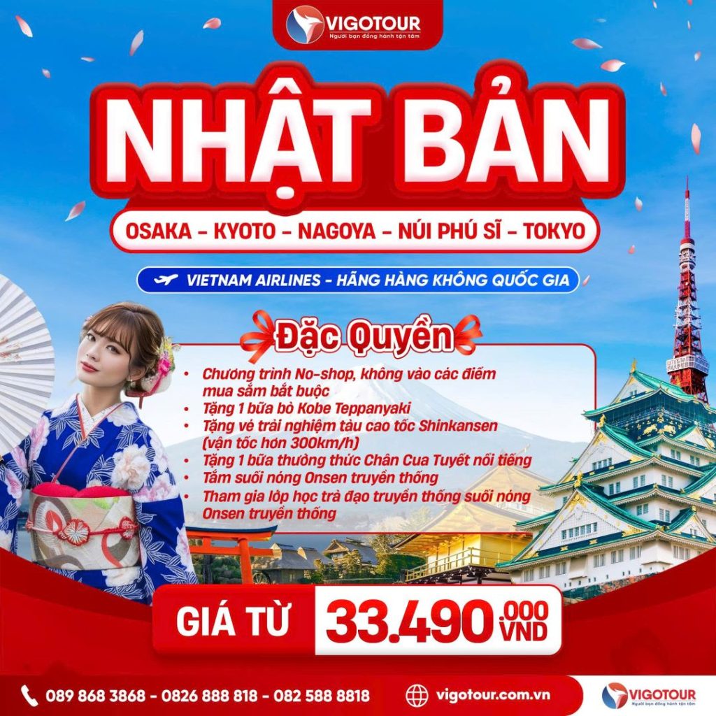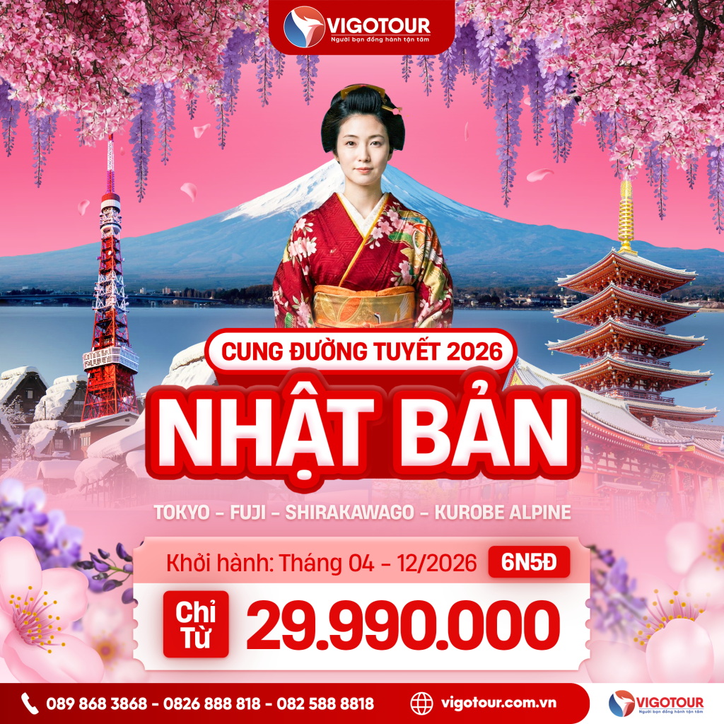 DU LỊCH NHẬT BẢN – CUNG ĐƯỜNG TUYẾT 2026 TOKYO – FUJI – SHIRAKAWAGO KUROBE – ALPHINE Hãng hàng không Vietjet Air KHỞI HÀNH: Tháng 04 – 12/2026 ĐIỂM NỔI BẬT...
