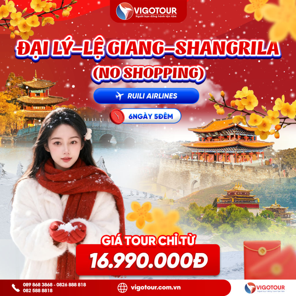 Hành trình khám phá Trung Hoa ĐẠI LÝ – LỆ GIANG – SHANGRILA Thời gian: 06 Ngày 05 Đêm Hàng không: Ruili Airlines HÀNH TRÌNH NO SHOPPING ĐIỂM NỔI BẬT CHƯƠNG TRÌNH...