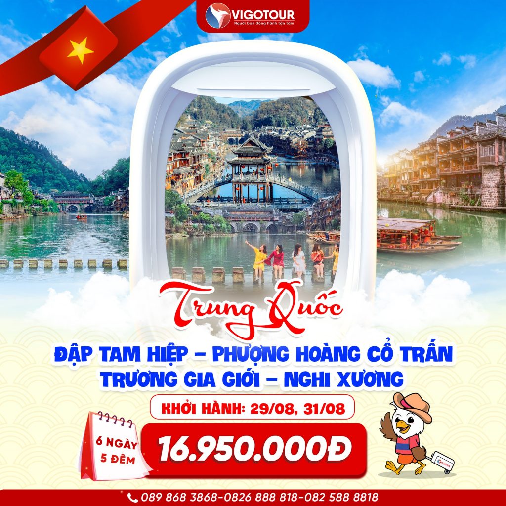 Du Lịch Trung Quốc Lễ 02.09 TRƯƠNG GIA GIỚI – PHƯỢNG HOÀNG CỔ TRẤN – ĐẬP TAM HIỆP Thời gian: 6 ngày 5 đêm – Phương tiện: Máy bay + xe ô tô Lễ...