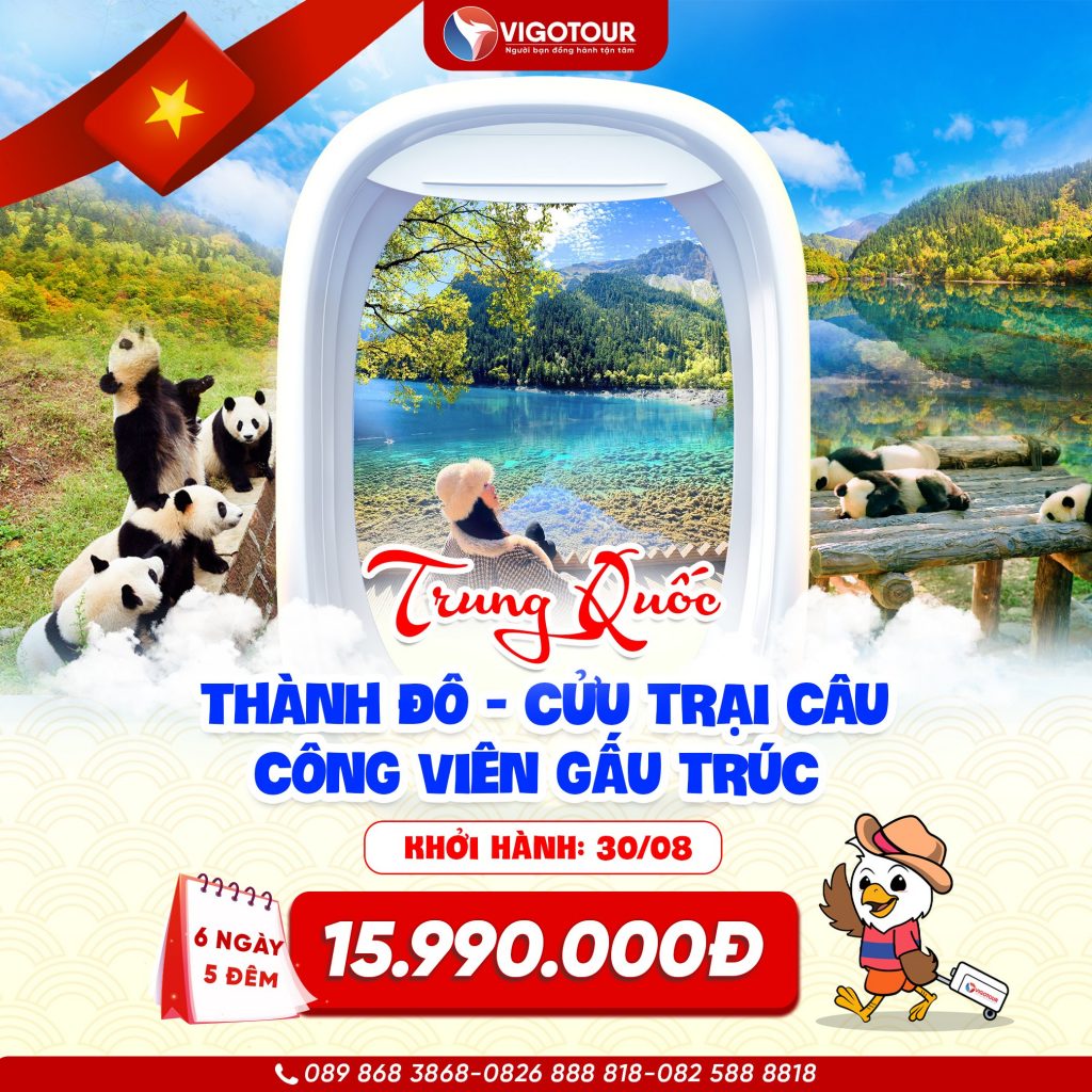 Chương trình tham quan THÀNH ĐÔ – CỬU TRẠI CÂU – CÔNG VIÊN GẤU TRÚC Thời gian: 5 Ngày 5 Đêm Hàng không: Vietjet Air ĐIỂM NỔI BẬT TRONG CHƯƠNG TRÌNH TOUR...
