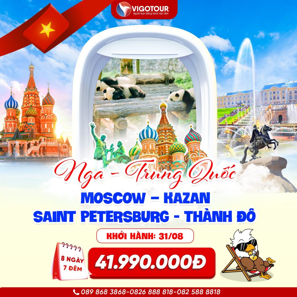 DU LỊCH NGA – TRUNG QUỐC LỄ 02/09 MOSCOW – KAZAN – SAINT PETERSBURG – THÀNH ĐÔ Thời gian: 8 ngày 7 đêm – Khách sạn: 4 sao Hãng hàng không: Sichuan Airline...