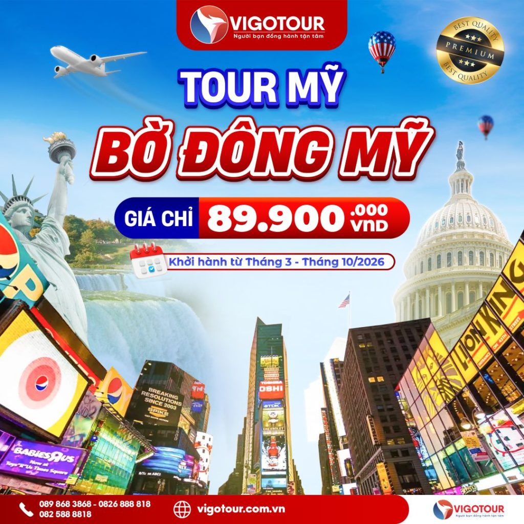 ĐÓN SÓNG WORLD CUP 2026 CÙNG VIGOTOUR! TOUR BỜ ĐÔNG MỸ NEW YORK – PHILADELPHIA – WASHINGTON DC – NIAGARA FALL – ALBANY – BOSTON Khởi hành dự kiến: 23/06/2026 –...
