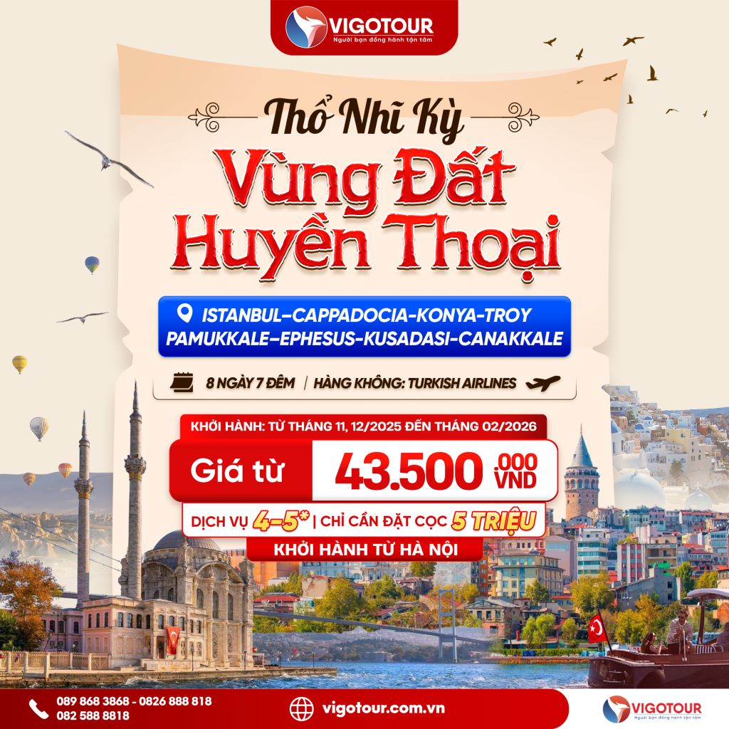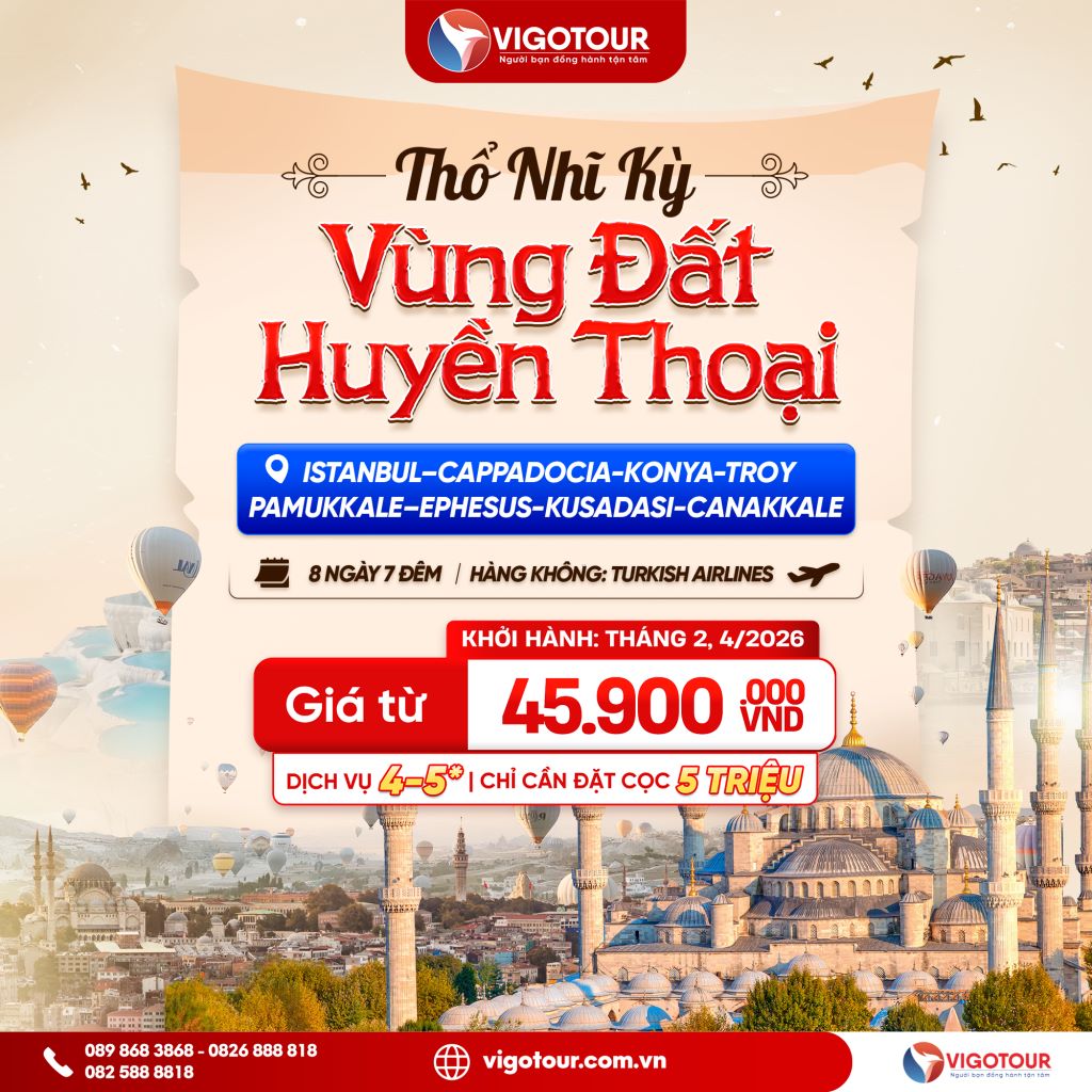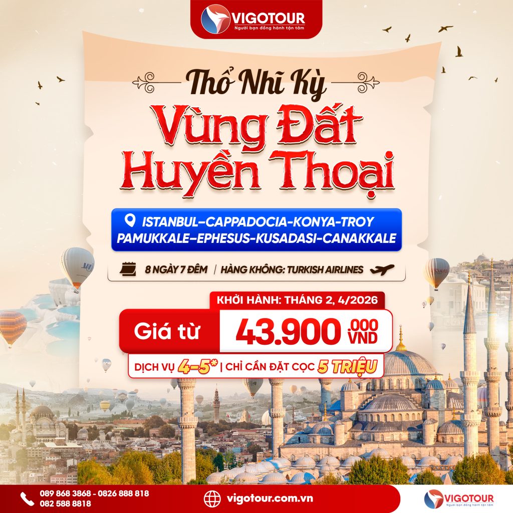 THỔ NHĨ KỲ- QUỐC GIA GIAO THOA NỀN VĂN HÓA Á-ÂU ISTANBUL – CANAKKALE – KUSADASI – PAMUKKALE – KONYA – CAPPADOCIA – ISTANBUL Thời gian: 08 ngày 07 đêm (lưu trú...