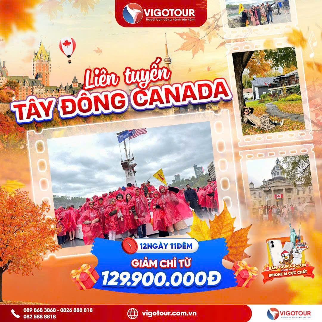 Chúng tôi trân trọng giới thiệu đến Quý khách hành trình đặc biệt “LIÊN TUYẾN ĐÔNG TÂY CANADA” – một chuyến đi kỳ công được thiết kế để đưa bạn khám phá trọn vẹn đất nước lá phong đỏ. Từ những đô thị sôi động như Toronto, Montreal, Vancouver, đến kỳ quan thiên nhiên như thác Niagara, đảo Victoria hay xứ ngàn đảo, mỗi điểm dừng chân là một dấu ấn khó quên.
